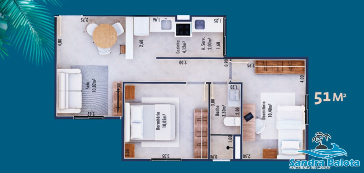 Área Total 51 m²