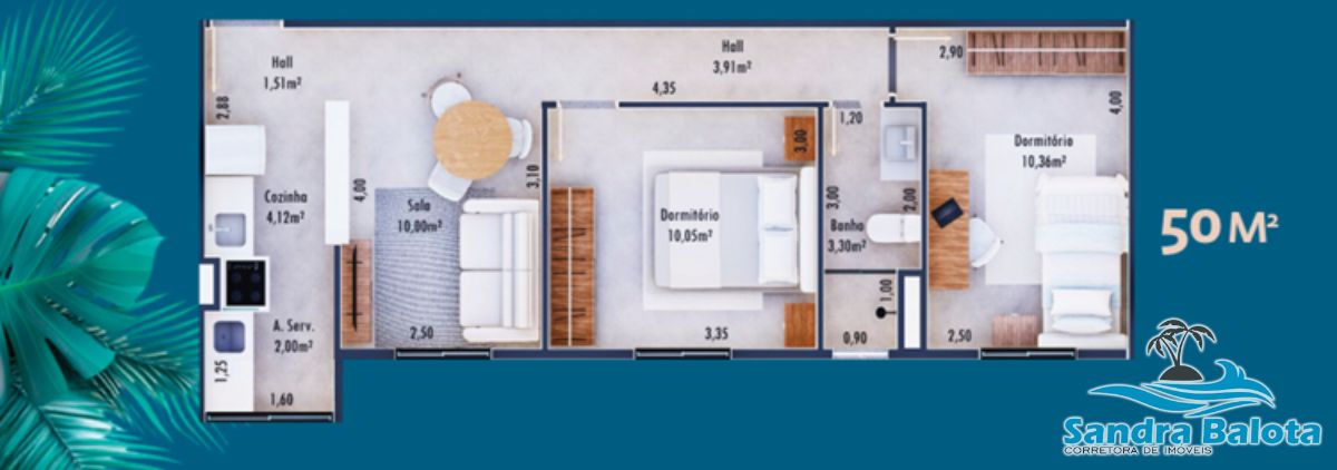 Área Útil 51 m²